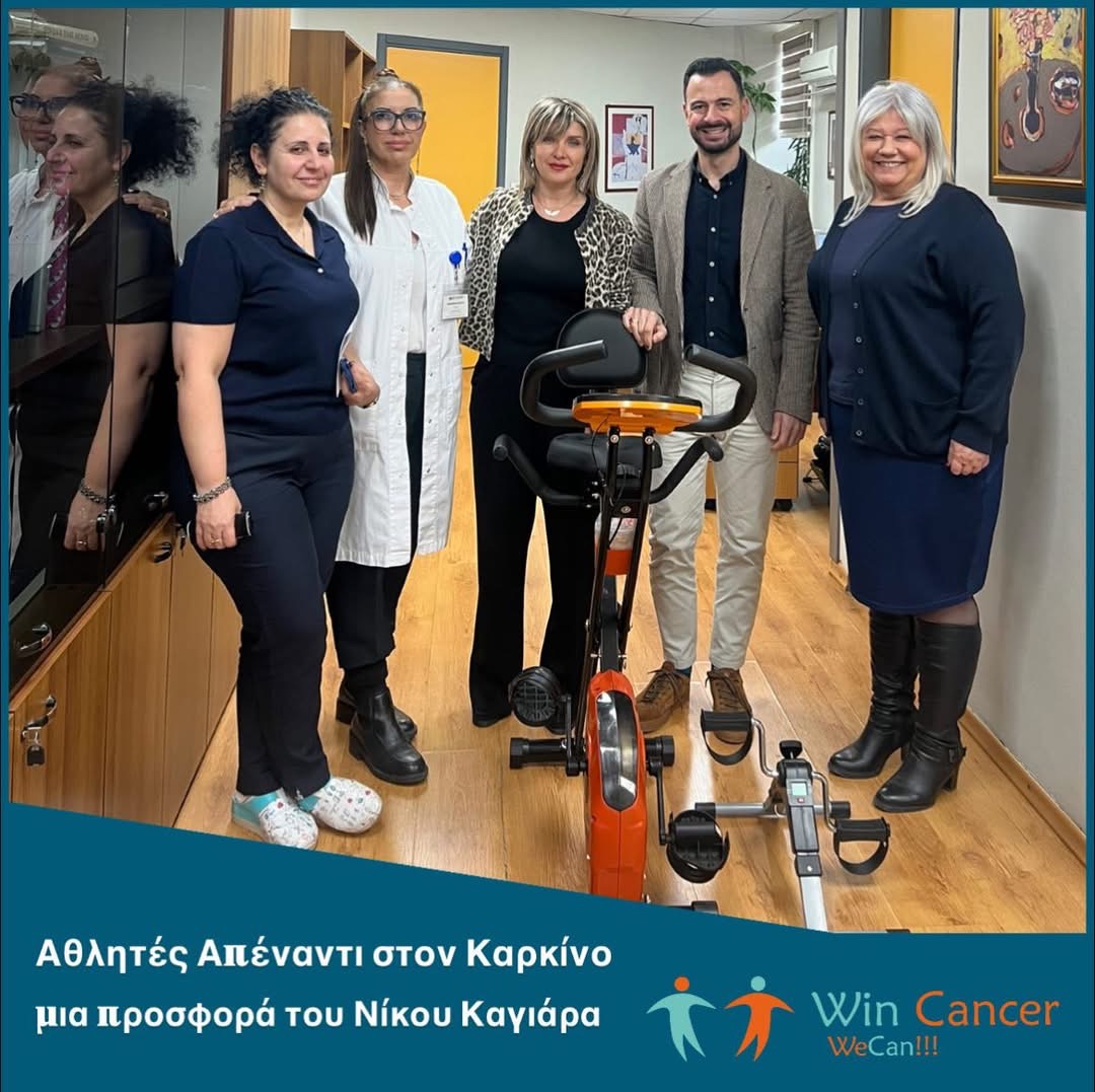 Τη Δευτέρα 15 Δεκεμβρίου, η Αστική Μη Κερδοσκοπική Εταιρεία WinCancer πραγματοποίησε την παράδοση εξοπλισμού ήπιας άσκησης στο Μποδοσάκειο Νοσοκομείο Πτολεμαΐδας, στο πλαίσιο της δράσης «Αθλητές απέναντι στον Καρκίνο», ενισχύοντας έμπρακτα το έργο του Νοσοκομείου. Η δωρεά περιλαμβάνει: • ένα στατικό, αναδιπλούμενο ποδήλατο γυμναστικής για το Ογκολογικό Τμήμα, • μία μαγνητική πεταλιέρα (mini bike) για το …