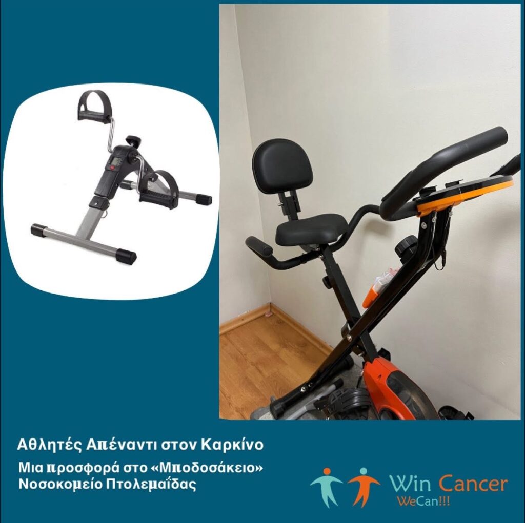 Τη Δευτέρα 15 Δεκεμβρίου, η Αστική Μη Κερδοσκοπική Εταιρεία WinCancer πραγματοποίησε την παράδοση εξοπλισμού ήπιας άσκησης στο Μποδοσάκειο Νοσοκομείο Πτολεμαΐδας, στο πλαίσιο της δράσης «Αθλητές απέναντι στον Καρκίνο», ενισχύοντας έμπρακτα το έργο του Νοσοκομείου.