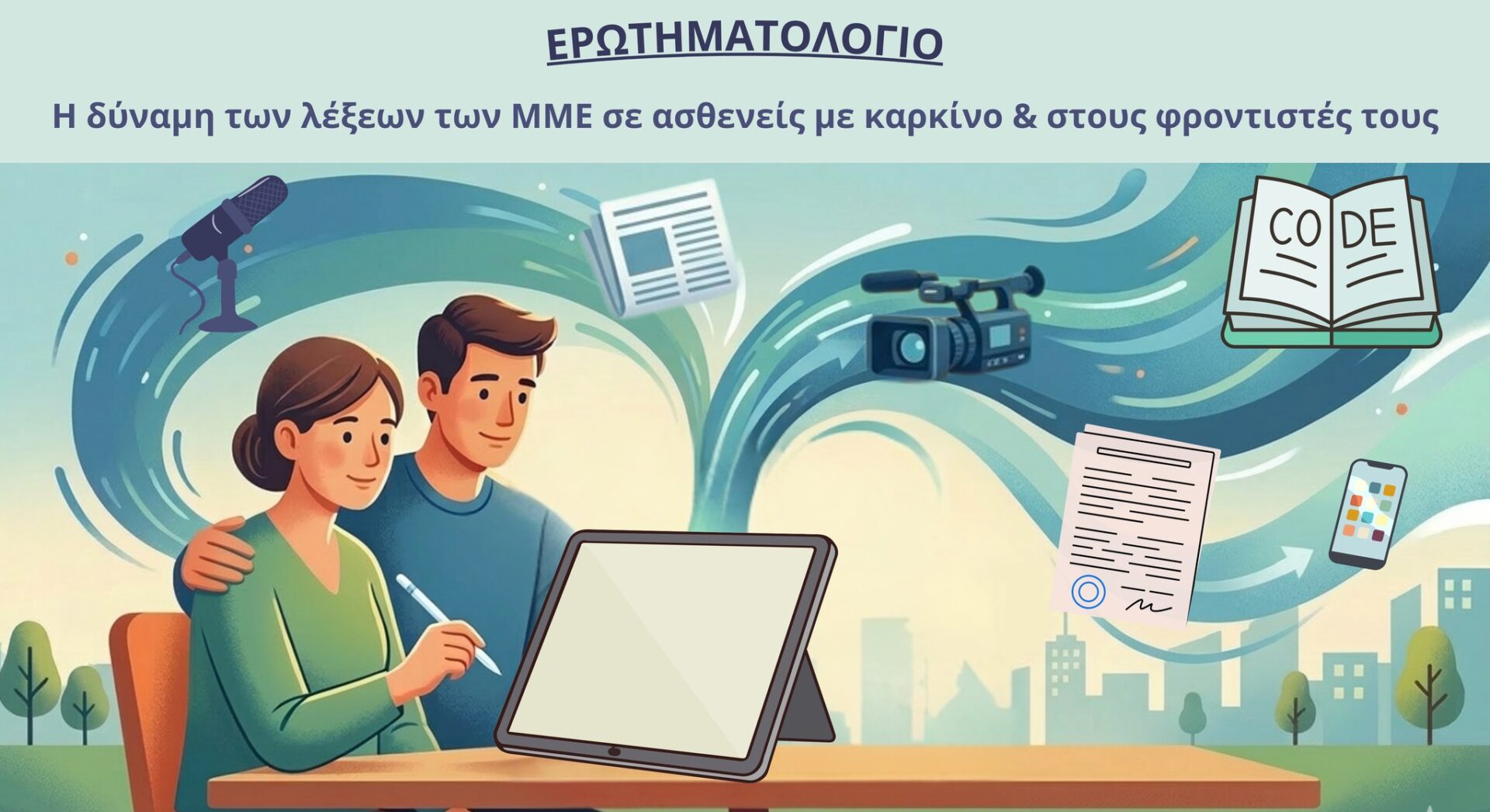 Το παρόν ερωτηματολόγιο διερευνά τον τρόπο με τον οποίο η γλώσσα που χρησιμοποιείται στα Μέσα Μαζικής Ενημέρωσης για τον καρκίνο γίνεται αντιληπτή από ασθενείς με καρκίνο και από φροντιστές τους, καθώς και την επίδρασή της στη συναισθηματική και ψυχολογική τους εμπειρία.