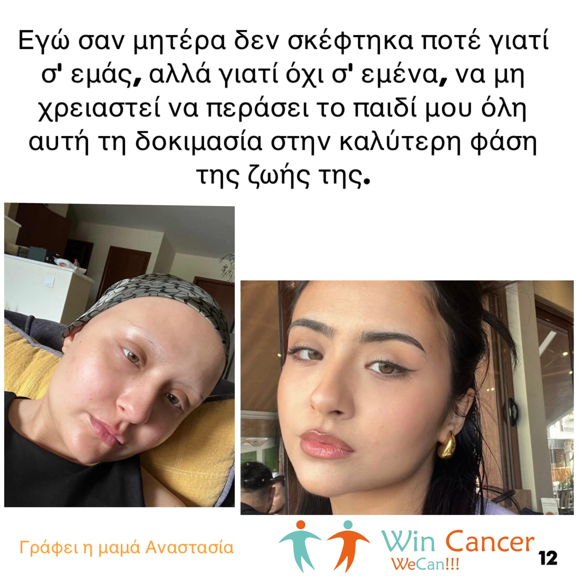 Από τη δοκιμασία έμεινε μια σχέση ζωής με τους συναδέλφους, που όσα ευχαριστώ και να πω δεν θα φτάσουν να εκφράσουν την ευγνωμοσύνη μου. Εγώ σαν μητέρα δεν σκέφτηκα ποτέ γιατί σ’ εμάς, αλλά γιατί όχι σ’ εμένα, να μη χρειαστεί να περάσει το παιδί μου όλη αυτή τη δοκιμασία στην καλύτερη φάση της ζωής της.