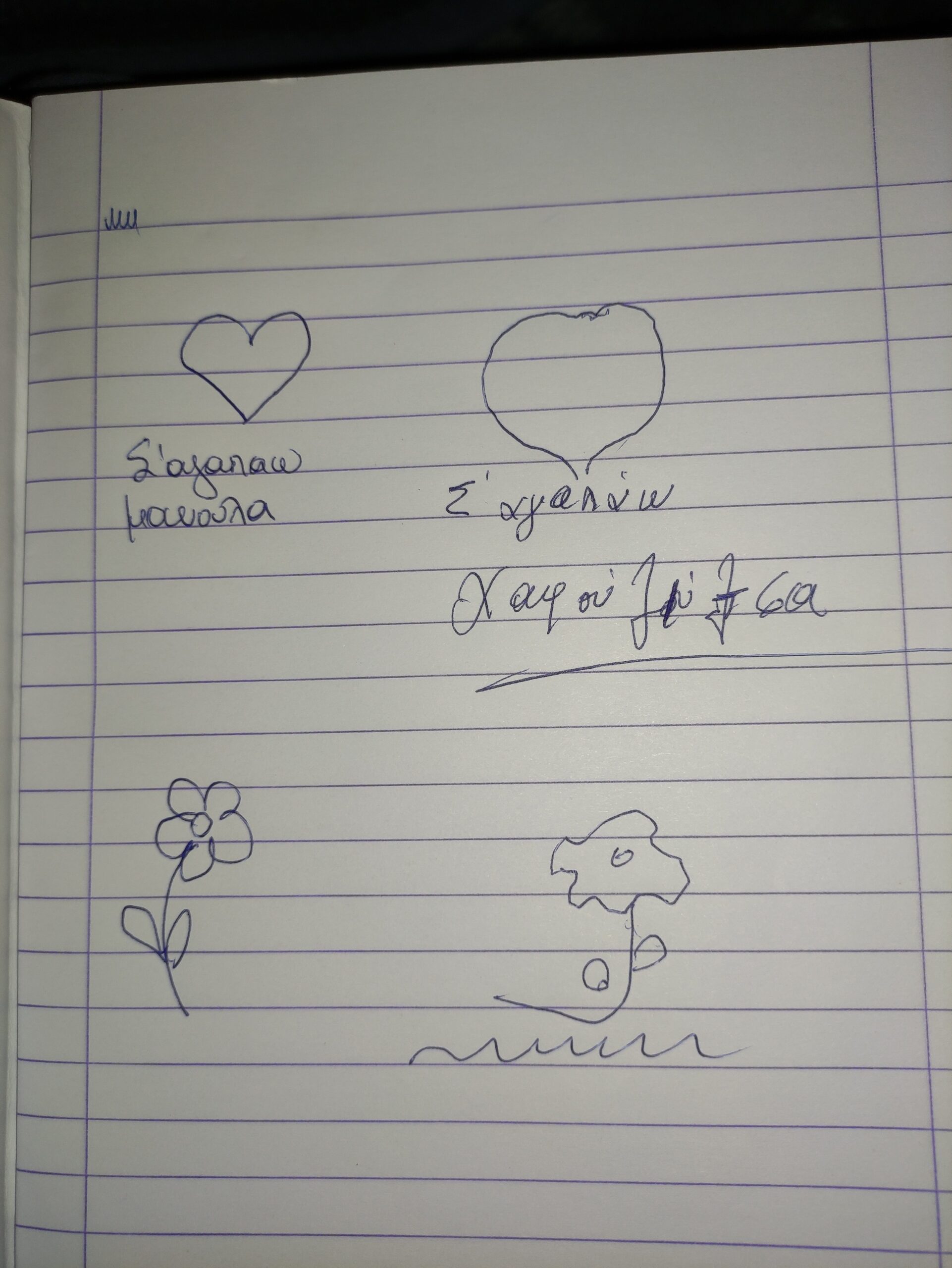 -Θα φτιάξω και ένα λουλουδάκι…όπως αυτά που μου ζωγράφιζες πάντα σε όλα μου τα τετράδια..θυμάσαι;