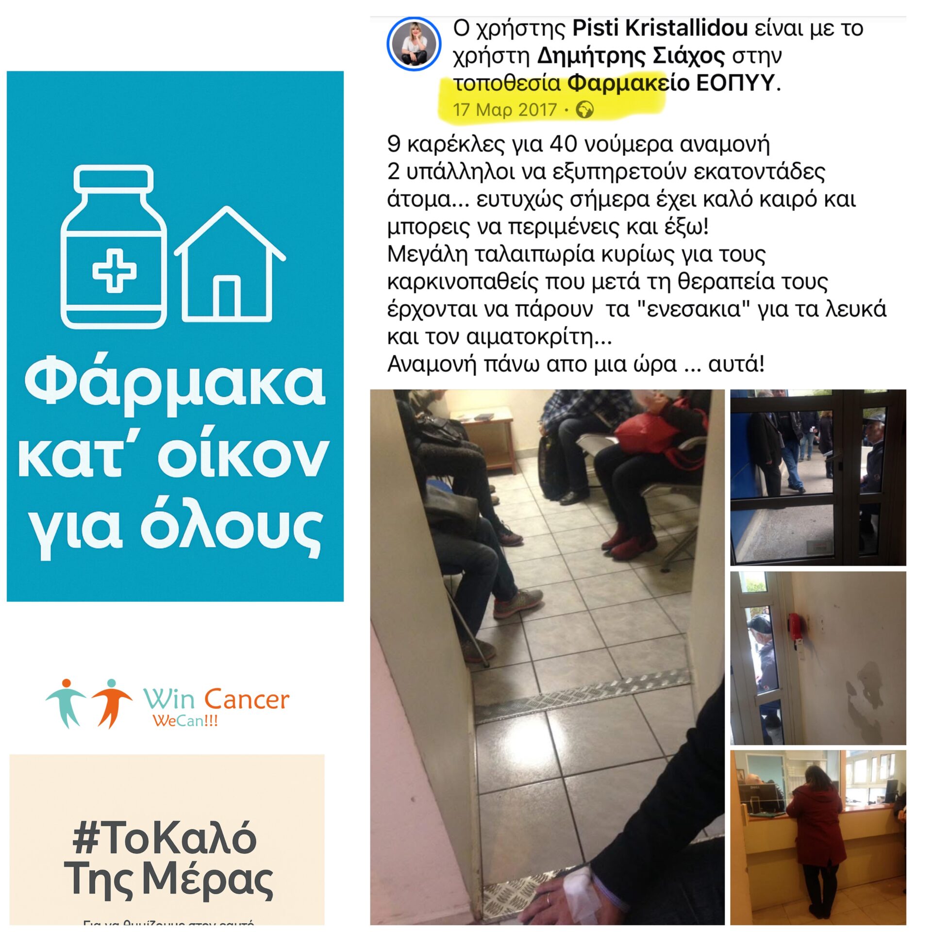 Μεγάλη ταλαιπωρία κυρίως για τους καρκινοπαθείς, που μετά τη θεραπεία τους έρχονται να πάρουν τα “ενεσάκια” για τα λευκά και τον αιματοκρίτη.